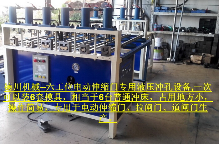 六工位電動伸縮門專用液壓沖孔設(shè)備,一次可以裝6套模具,相當(dāng)于6臺普通沖床,占用地方小,操作簡易,專用于電動伸縮門、拉閘門、道閘門生產(chǎn)。...