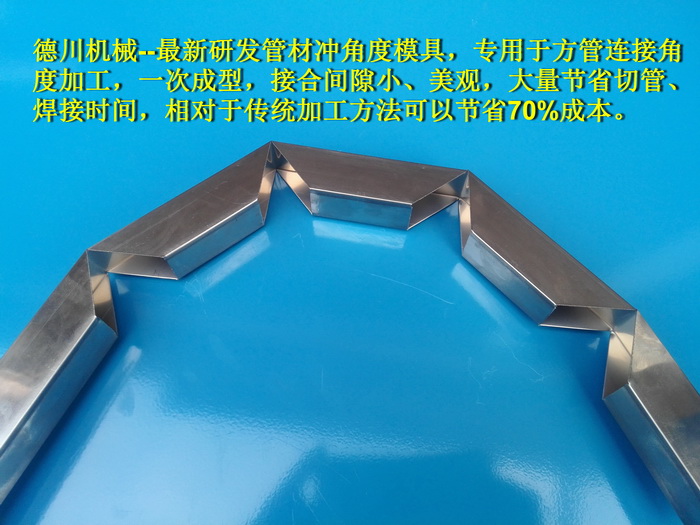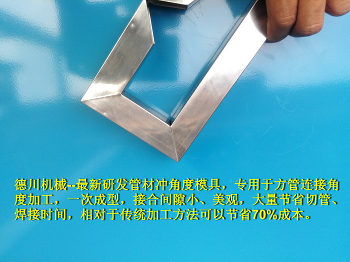 德川機(jī)械--最新研發(fā)管材沖角度模具,專用于方管連接角度加工,一次成型,接合間隙小、美觀,大量節(jié)省切管、焊接時間,相對于傳統(tǒng)加工方法可以節(jié)省70%成本。...