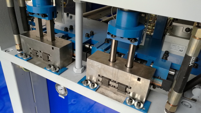 6、裝模、換模簡單,機(jī)臺上有定位裝置,模具對準(zhǔn)定位裝置后鎖緊螺絲即可;