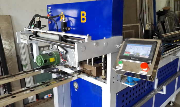 一次可以同時沖4支管,最高速度可以達到每秒鐘沖3個孔,一天可以沖6米管材1000支、